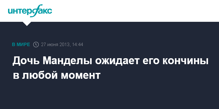 Йоханнесбург. 27 июня. INTERFAX.RU - Состояние здоровья бывшего президента ЮАР Нельсона Манделы в высшей степени критическое, и потому он может скончаться в любой момент, заявила в четверг его дочь Маказиве.