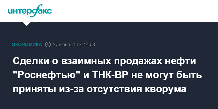 Сделки о взаимных продажах нефти "Роснефтью" и ТНК-ВР не могут быть приняты из-за отсутствия кворума