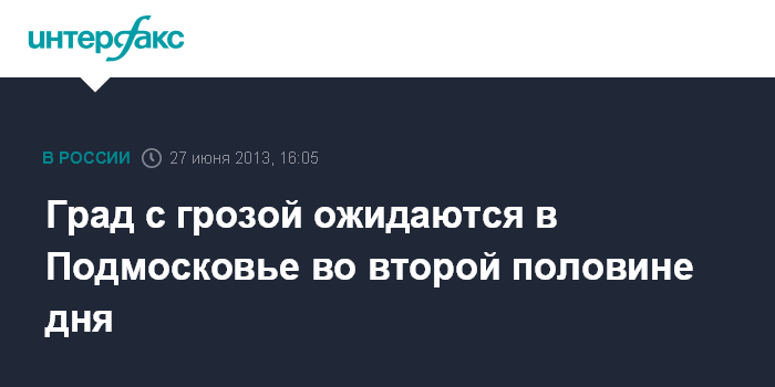 Москва. 27 июня. INTERFAX.RU - Вечером четверга в Московской области пройдут ливень, грозы и местами град, сообщает пресс-служба Росгидромета.