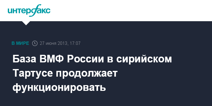 Москва. 27 июня. INTERFAX.RU - В Министерстве обороны России назвали не соответствующими действительности сообщения о выводе российского персонала пункта материально-технического обеспечения (ПМТО) ВМФ из сирийского порта Тартус.