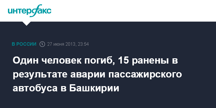Один человек погиб, 15 ранены в результате аварии пассажирского автобуса в Башкирии