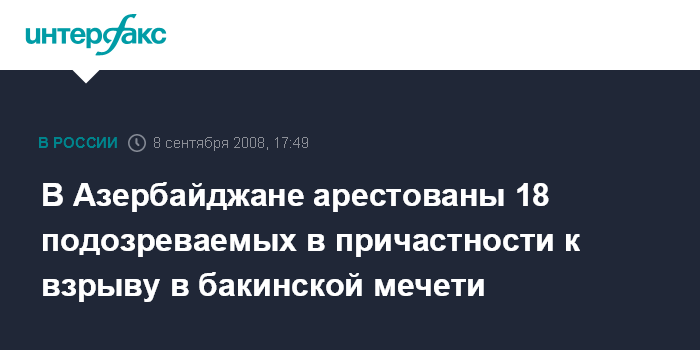 В Азербайджане арестованы 18 подозреваемых в причастности к взрыву в бакинской мечети