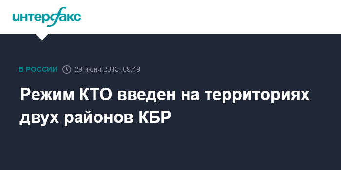 Нальчик. 29 июня. INTERFAX.RU - Режим контртеррористической операции введен с 8:00 субботы на части территорий Урванского и Черекского районов Кабардино-Балкарии, сообщает Оперативный штаб в КБР.