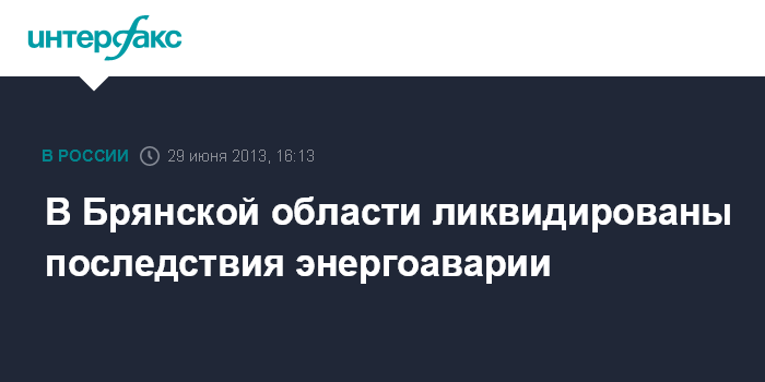 Москва. 29 июня. INTERFAX.RU - Восстановлено энергоснабжение в Брянской области, где в шести районах из-за сильного ветра произошли отключения электроэнергии, сообщает сайт МЧС РФ в субботу. "В 14:05 мск аварийно-восстановительные работы в Брянской области завершены. Энергоснабжение восстановлено по штатной схеме", - говорится в сообщении. Ранее в зону отключения попало 36 населенных пунктов, в которых проживает до 8 тыс. человек.