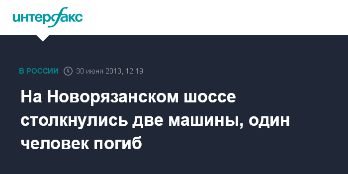На Новорязанском шоссе столкнулись две машины, один человек погиб