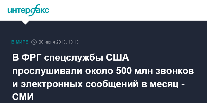 Берлин. 30 июня. INTERFAX.RU - Американские спецслужбы ежемесячно прослушивали и отслеживали около полумиллиарда телефонных звонков, электронных писем и СМС немецких граждан, сообщил в воскресенье журнал Der Spiegel.