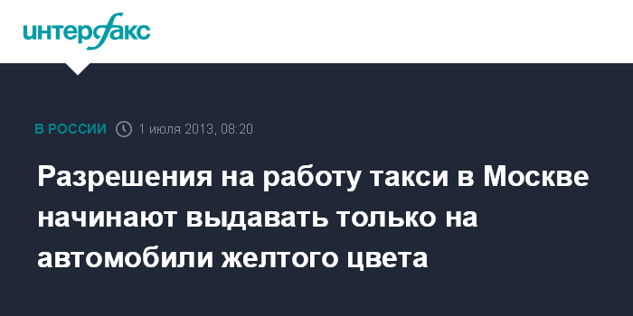 Москва. 1 июля. INTERFAX.RU - С понедельника вступает в силу закон, вводящий обязательность желтого цвета для автомобилей, оказывающих в столице услуги таксомоторных перевозок.