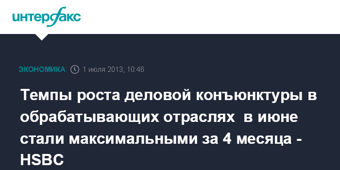 Темпы роста деловой конъюнктуры в обрабатывающих отраслях в июне стали максимальными за 4 месяца - HSBC