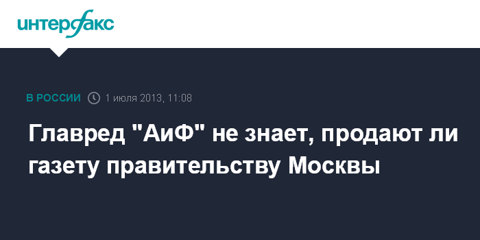 Ранее в газете "Ведомости" появилось информация о возможном приобретении правительством Москвы газеты "АиФ". По информации авторов статьи, соответствующие переговоры от города ведет заммэра по информационной политике Александр Горбенко. По данным источников "Ведомостей", сделка может совершиться уже в августе-сентябре, а ее цена, по мнению опрошенных газетой экспертов, может составить $75-120 млн.