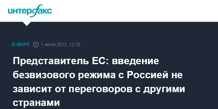 Представитель ЕС: введение безвизового режима с Россией не зависит от переговоров с другими странами
