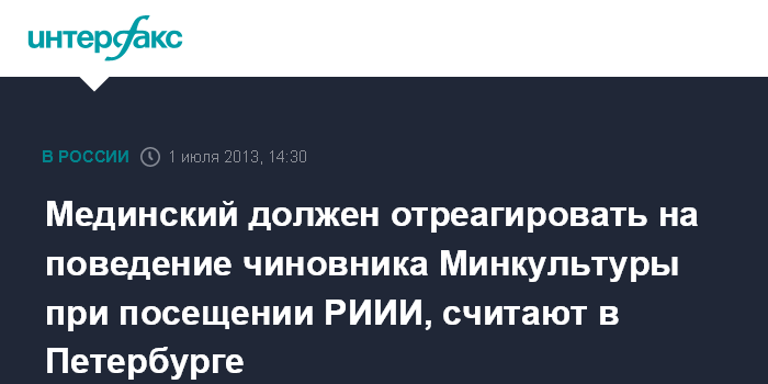 Мединский должен отреагировать на поведение чиновника Минкультуры при посещении РИИИ, считают в Петербурге