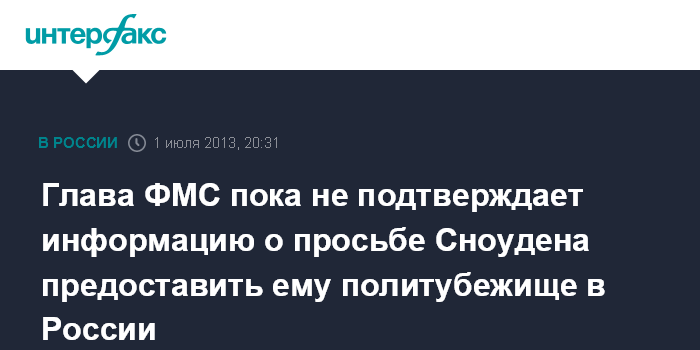 Глава ФМС пока не подтверждает информацию о просьбе Сноудена предоставить ему политубежище в России