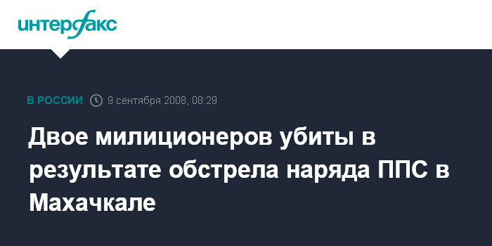 Москва. 9 сентября. INTERFAX.RU - Двое милиционеров убиты в ночь на вторник в Махачкале, сообщили "Интерфаксу" в пресс-службе МВД Дагестана.