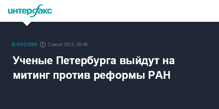 Санкт-Петербург. 2 июля. INTERFAX.RU - Сотрудники петербургских институтов РАН во вторник проведут митинг против готовящейся реформы академии.