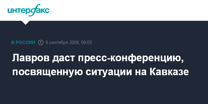 Москва. 9 сентября. INTERFAX.RU - Глава МИД РФ Сергей Лавров проведет во вторник в 11:00 пресс-конференцию, посвященную вопросам урегулирования ситуации на Кавказе. Пресс-конференция министра будет транслироваться в прямом эфире.