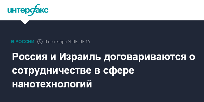 Москва. 9 сентября. INTERFAX.RU - Российская государственная корпорация нанотехнологий (Роснанотех) намерена заключить договор о сотрудничестве с израильскими коллегами.