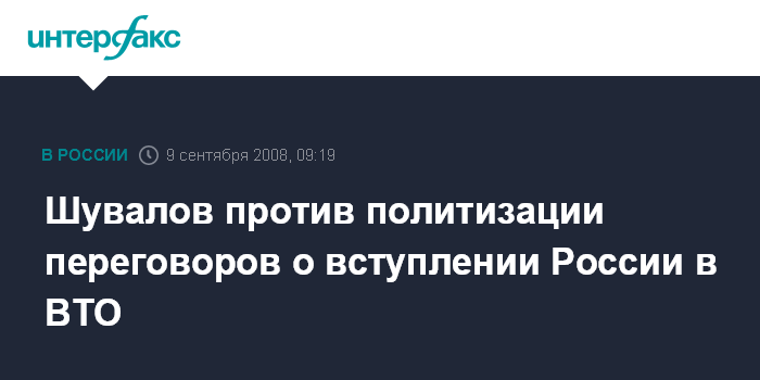 Шувалов против политизации переговоров о вступлении России в ВТО