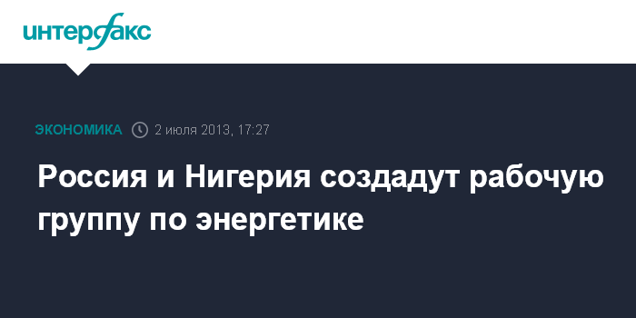 Москва. 2 июля. INTERFAX.RU - Россия и Нигерия создадут рабочую группу по энергетике для улучшения координации между двумя государствами, говорится в сообщении Минэнерго России.