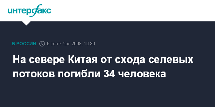 Москва. 9 сентября. INTERFAX.RU - Число погибших под развалинами склада в городе Линьфэнь северной китайской провинции Шаньси достигло 34 человек, еще 35 человек были ранены, сообщили китайские СМИ со ссылкой на заявление местных спасателей.