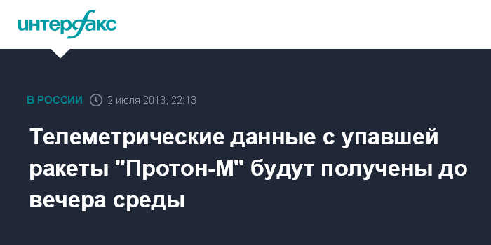 Москва. 2 июля. INTERFAX.RU - Телеметрические данные с потерпевшей крушение ракеты "Протон-М" будут получены до вечера среды, сообщил вице-премьер Дмитрий Рогозин.