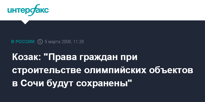 Козак: "Права граждан при строительстве олимпийских объектов в Сочи будут сохранены"