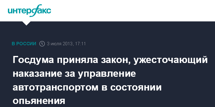 Госдума приняла закон, ужесточающий наказание за управление автотранспортом в состоянии опьянения