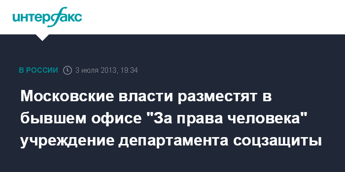 Московские власти разместят в бывшем офисе "За права человека" учреждение департамента соцзащиты
