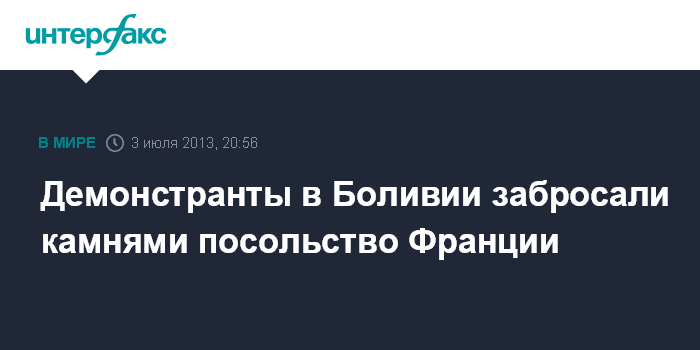 Ла-Пас. 3 июля. INTERFAX.RU - Группа из примерно 100 демонстрантов провела акцию протеста около посольства Франции в столице Боливии, сообщает агентство ЭФЭ.