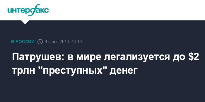 Патрушев: в мире легализуется до $2 трлн "преступных" денег