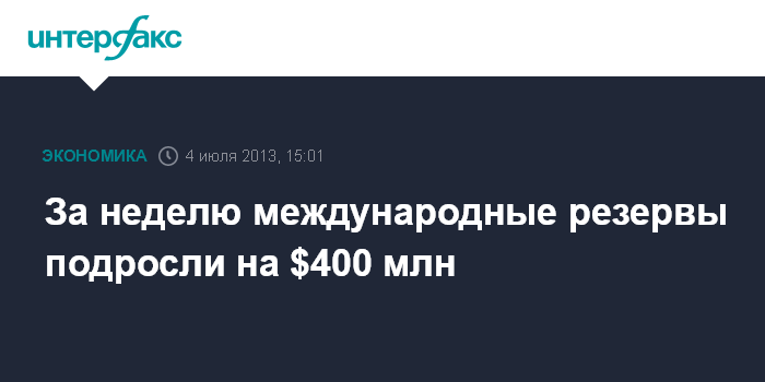 Таким образом, за неделю международные резервы выросли на $0,4 млрд.