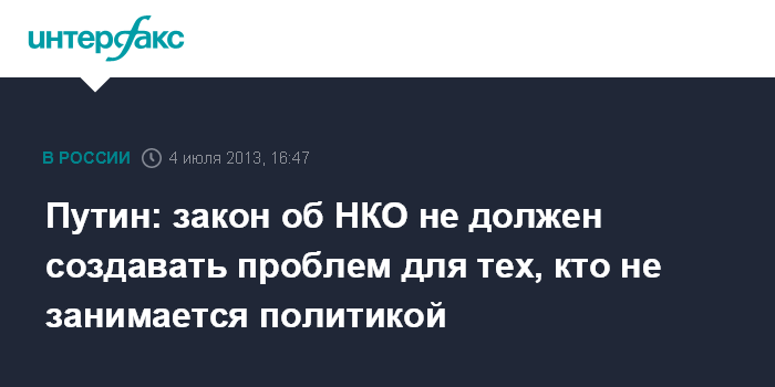 Путин: закон об НКО не должен создавать проблем для тех, кто не занимается политикой