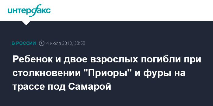 По данным полиции, в 21:30 на трассе "Тольятти - Димитровград" на перекрестке села Новая Бинорадка водитель "Приоры" не предоставил преимущество идущей по главной дороге фуре. В результате погибли три человека", - рассказал Гольдштейн.