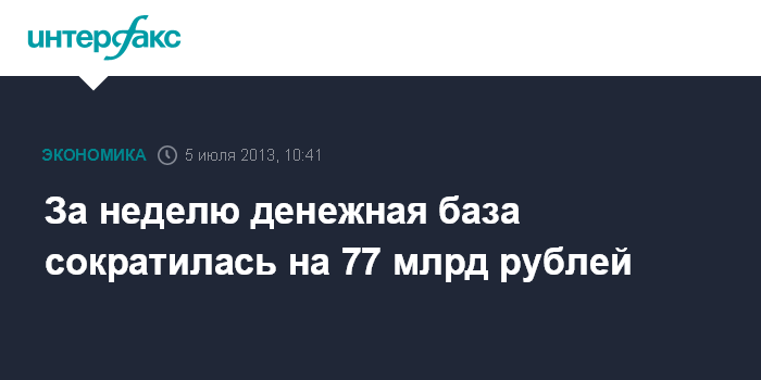 Таким образом, денежная база уменьшилась на 77 млрд руб.