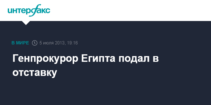 Каир. 5 июля. INTERFAX.RU - Генеральный прокурор Египта Абдель Мегид Махмуд в пятницу подал в отставку, сообщают местные СМИ.