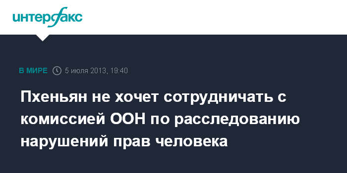 Пхеньян не хочет сотрудничать с комиссией ООН по расследованию нарушений прав человека