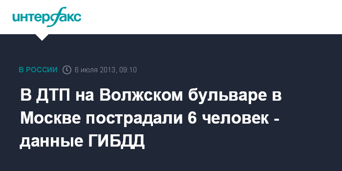 Москва. 6 июля. ИНТЕРФАКС - Шесть человек пострадали в ночном ДТП на юго-востоке столицы, сообщили "Интерфаксу" в пресс-службе управления ГИБДД Москвы.