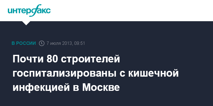 Почти 80 строителей госпитализированы с кишечной инфекцией в Москве