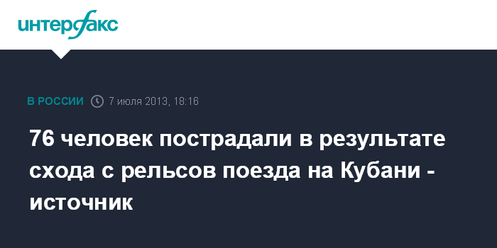 76 человек пострадали в результате схода с рельсов поезда на Кубани - источник
