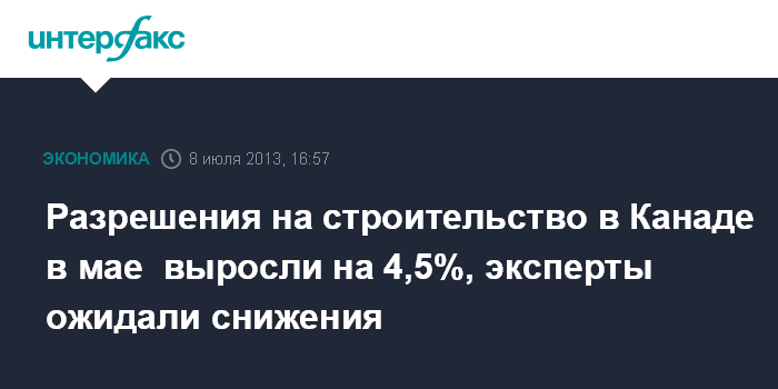 8 июля. FINMARKET.RU - Разрешения на строительство в Канаде в мае 2013 года выросли по сравнению с апрелем на 4,5% - до 7,323 млрд канадских долларов, свидетельствуют данные Статистического управления страны. Рост разрешений на строительство фиксируется пятый месяц подряд.
