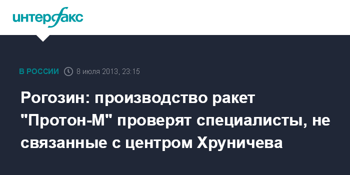 В эфире радиостанции "Эхо Москвы" вице-премьер заявил, что в группу не будут входить специалисты центра Хруничева или других космических предприятий. Члены комиссии проверят всю технологическую цепь, весь ход регламентных работ на предприятии по изготовлению этой ракеты.