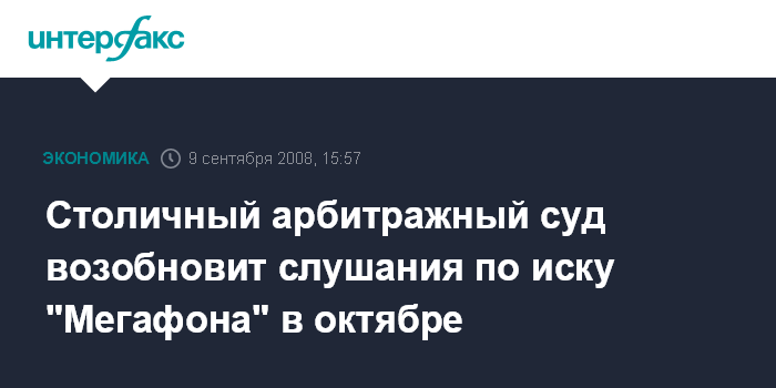 Столичный арбитражный суд возобновит слушания по иску "Мегафона" в октябре