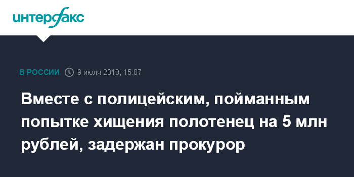 Москва. 9 июля. INTERFAX.RU – Вместе с сотрудником ярославской полиции, задержанным при попытке хищения махровых полотенец на 5 млн руб. со склада на юго-востоке Москвы, фигурантом дела стал сотрудник прокуратуры.