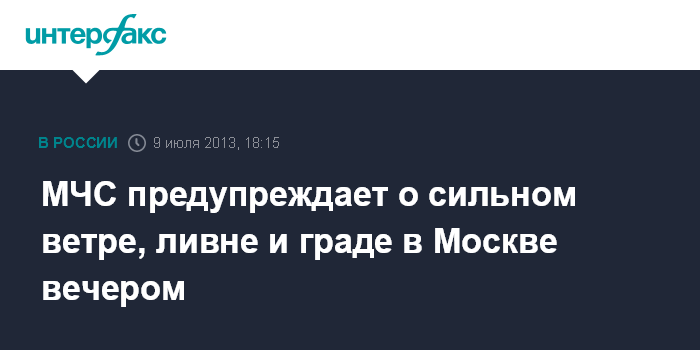 Москва. 9 июля. INTERFAX.RU - Сильный порывистый ветер и ливень с градом прогнозируются в Москве во вторник вечером, сообщили "Интерфаксу" в пресс-службе столичного главка МЧС.