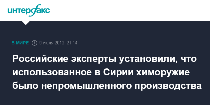 Нью-Йорк (ООН). 9 июля. INTERFAX.RU - Работавшие в Сирии российские эксперты выяснили, что использованное в провинции Алеппо химическое оружие было непромышленного производства и содержало зарин, заявил во вторник журналистам постпред РФ при ООН Виталий Чуркин.