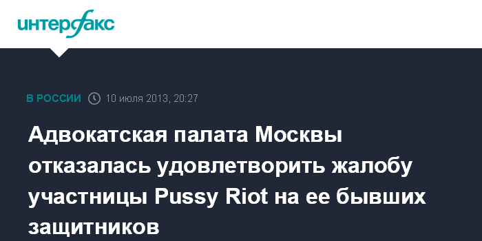 Адвокатская палата Москвы отказалась удовлетворить жалобу участницы Pussy Riot на ее бывших защитников