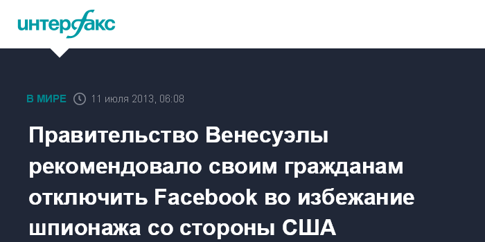 Правительство Венесуэлы рекомендовало своим гражданам отключить Facebook во избежание шпионажа со стороны США
