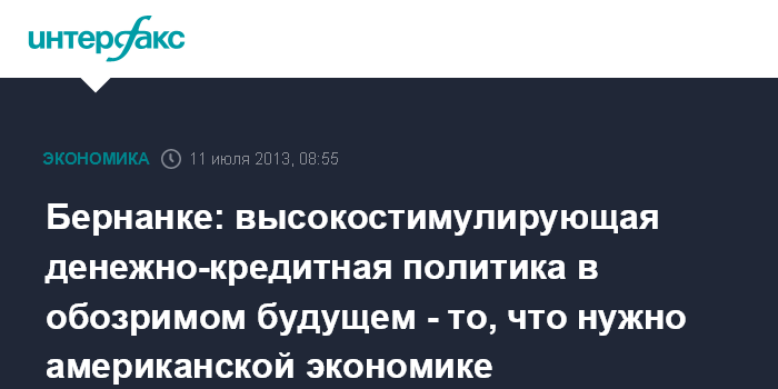 Бернанке: высокостимулирующая денежно-кредитная политика в обозримом будущем - то, что нужно американской экономике