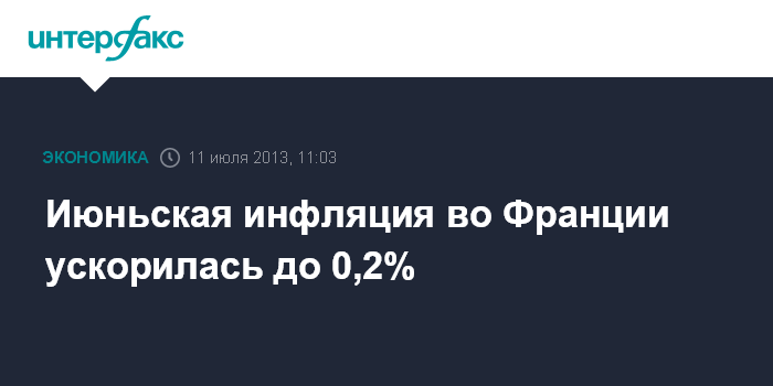 11 июля. FINMARKET.RU - В июне 2013 года потребительские цены во Франции выросли на 0,2% по сравнению с предыдущим месяцем, когда их рост составил 0,1%, свидетельствуют данные Национального статистического управления Insee.