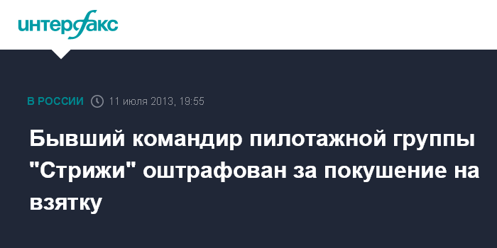 Бывший командир пилотажной группы "Стрижи" оштрафован за покушение на взятку