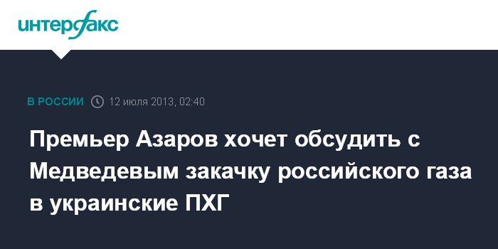 Премьер Азаров хочет обсудить с Медведевым закачку российского газа в украинские ПХГ